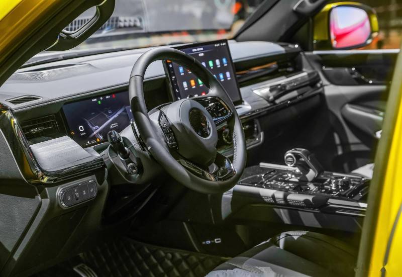 这套架构的核心逻辑在于“油电互补、动力不妥协”:2.0T米勒循环混动专用发动机负责稳定输出,杜绝电机持续峰值运转导致的高温限扭问题;P2前置电机则实现“削峰填谷”,让发动机始终处于最高效运转区间,既提升动力响应,又降低油耗。更关键的是,其机械四驱非解耦结构通过传动轴连接前后轴,配合“三把锁”(前锁选装),即便单轮着地也能传递100%扭矩,轻松应对极限脱困——这是纯电皮卡“电子四驱”难以企及的硬实力,也是“真新能源皮卡”的核心技术壁垒。