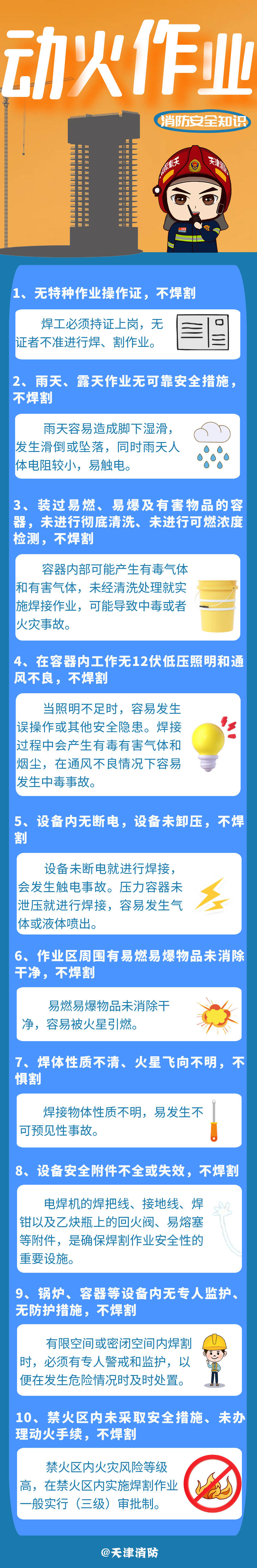 天津:动火作业消防安全知识 无特种作业操作证不准焊割