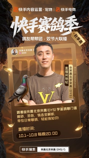 与此同时,在北京的鸽棚里,@北京宋晨 正对着镜头轻抚赛鸽的羽翼,细细讲解着骨骼与品相的奥秘,这位11岁就加入北京信鸽协会的“老鸽友”,如今在快手上拥有39万粉丝,他的直播间成了五湖四海鸽友的线上聚集地。