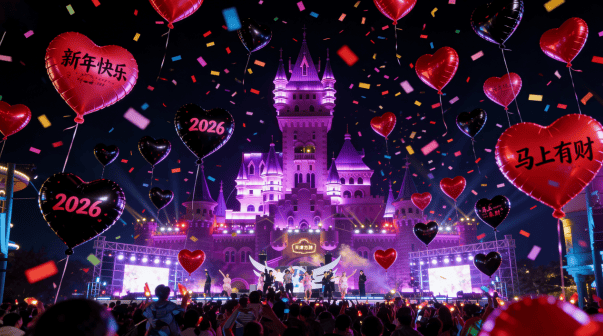 备受期待的“跨年狂欢派对”将于12月31日晚璀璨登场。人气男团未名行星强势来袭,带来魅力四射的互动与舞台表演,彻底点燃现场热情。在万人齐聚的城堡舞台前方,大家一起摇旗跨年,气球放飞,共同迎接2026年的零点钟声,将气氛推向最高潮。