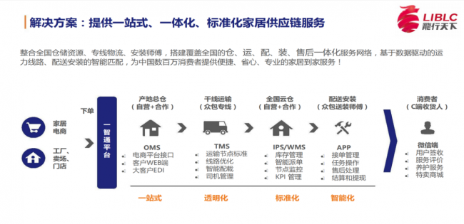 运输端依托智能运力调度中台实现实时车货匹配,通过AI算法优化运输路线,结合车载GPS定位系统实现全程可视化追踪,货物准时率超98%;仓储端近万平丙二类智能仓库搭载WMS系统,实现库存实时盘点、货位智能分配、订单自动处理,支持与企业ERP系统无缝对接;服务端针对家居产品特性设计智能防护方案,通过安装师傅GPS调度系统实现就近派单,配套售后工单系统快速响应客诉。